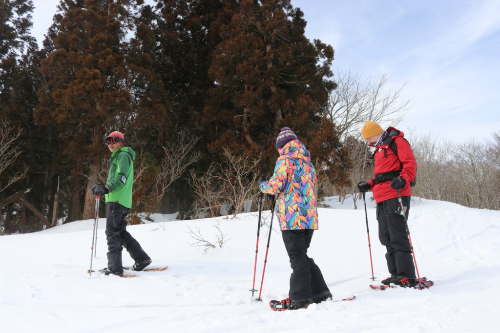 冬のスノーシュー体験(深入山コース) 冬の澄んだ空気の中で、雪山の静けさや雪結晶など、春や夏の山とは違う自然の魅力を体験できます。白銀の地面を踏みしめながら、非日常の世界を楽しんでください。