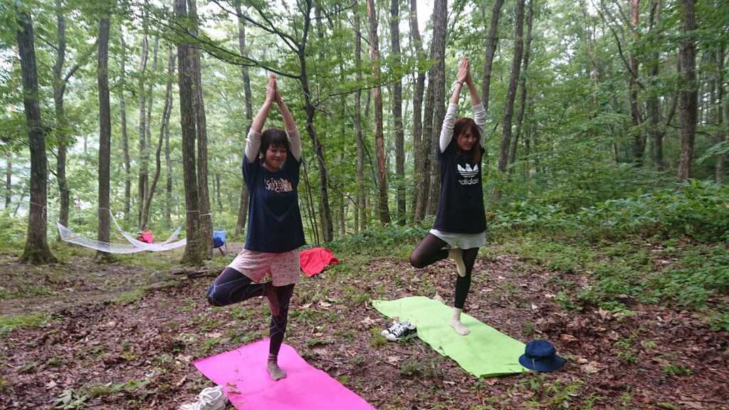 アウトドア料理やキッチンカー、森林セラピー®、森林セラピーヨガ、食べて・遊んで・身体を整えるイベント(森カフェ)です。 大人から子どもまで、多くの人が自然の中で癒されゆったりとした1日を過ごします。