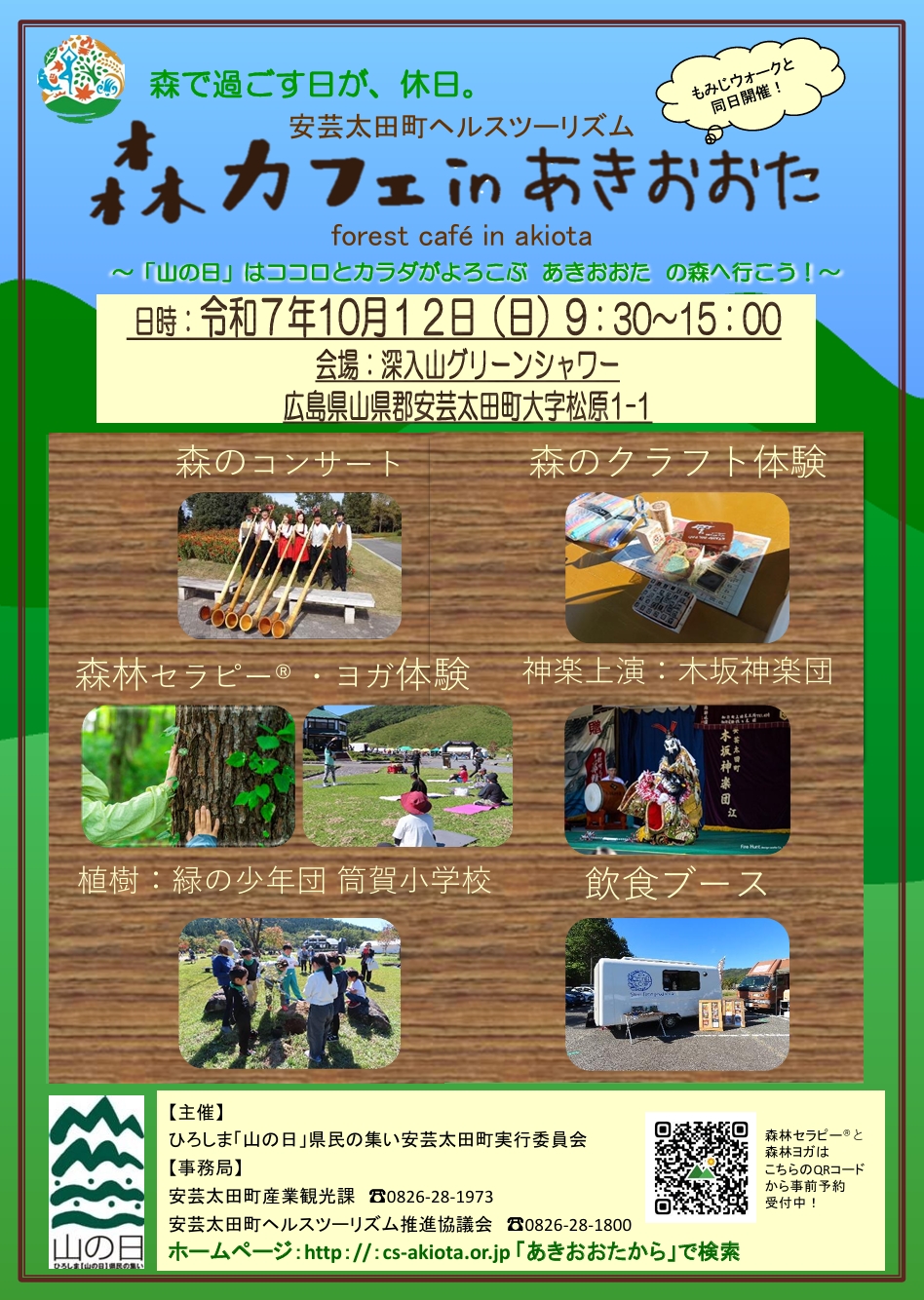 同日、安芸太田ウォーキング大会in深入山「もみじウォーク」も同時開催されます。森カフェ前に実施されますので、もみじウォーク後にぜひご参加ください。