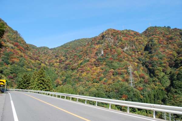 紅葉期 温井ダムへの道