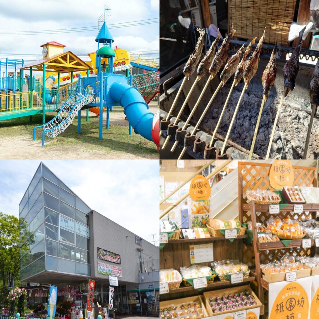 ~昼食、食べ歩き&産直・川魚塩焼き(週末限定)など満喫、家族で『わくわくランド』で遊んだり、クーポンで食事やレンタサイクルも~