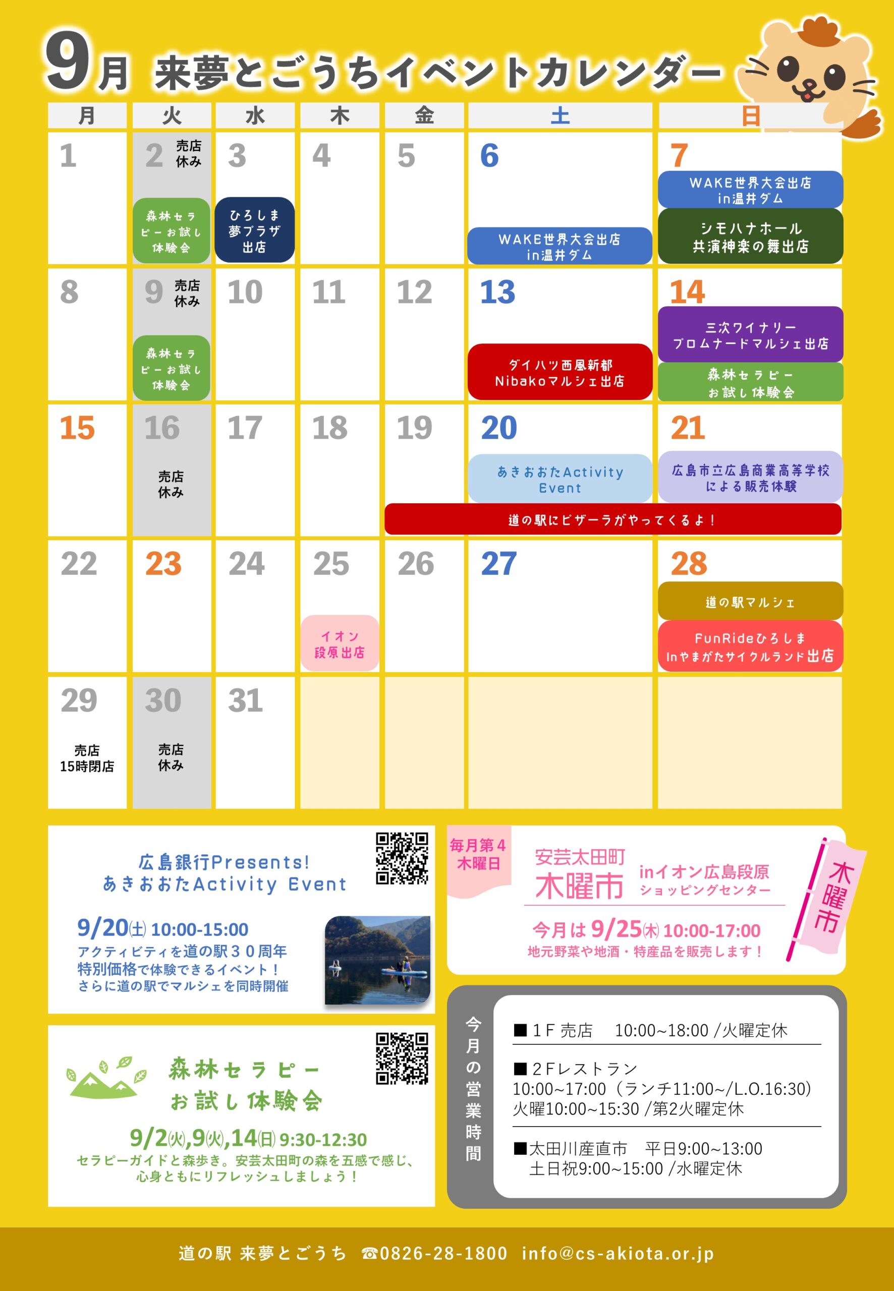 ★9月イベントカレンダー【道の駅来夢とごうち】