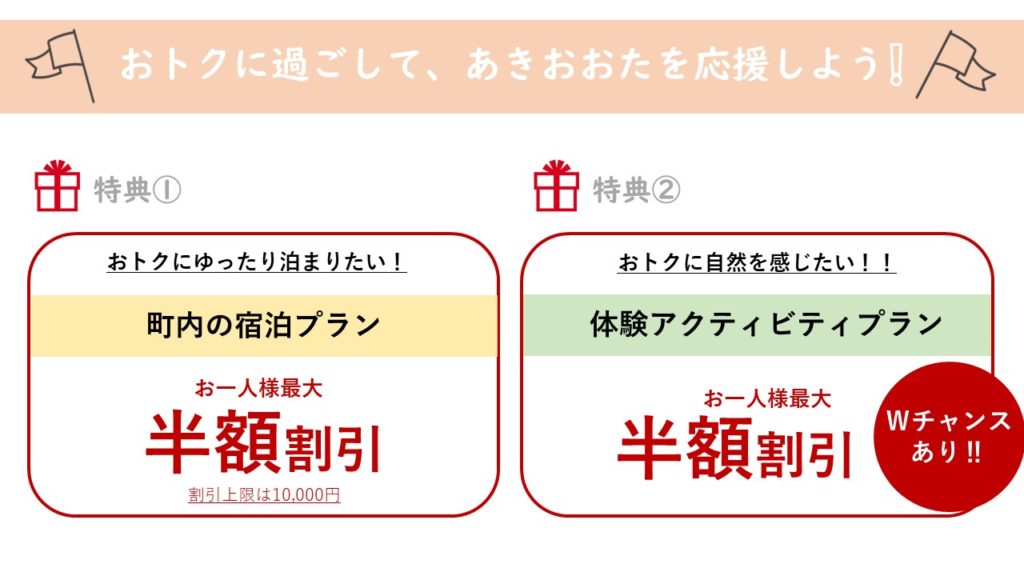 今年(2022年度)も5月21日からおトクに宿泊できる『あきおおたComeUpキャンペーン』が開始しています。