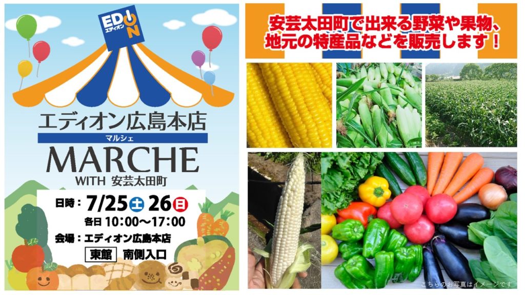 2025年7月26日・27日の土曜日と日曜日にエディオン広島本店で安芸太田町の新鮮な夏野菜と大人気商品「とうもろこし【数量限定】」をお届けします。