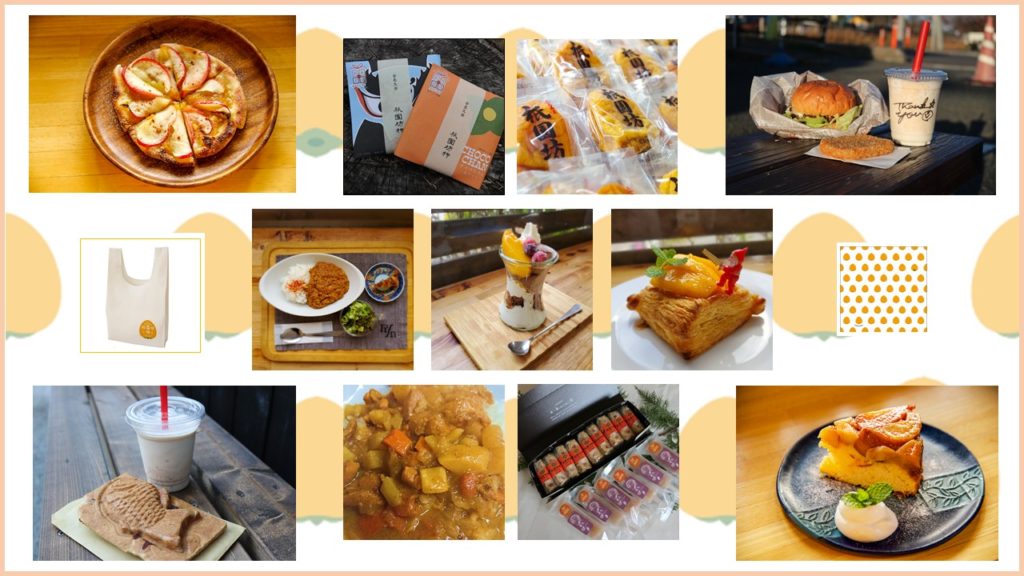 ②祇園坊柿にまつわる写真(キャンペーン対象メニュー、祇園坊柿の加工商品、あおし柿、干し柿など)を撮影。