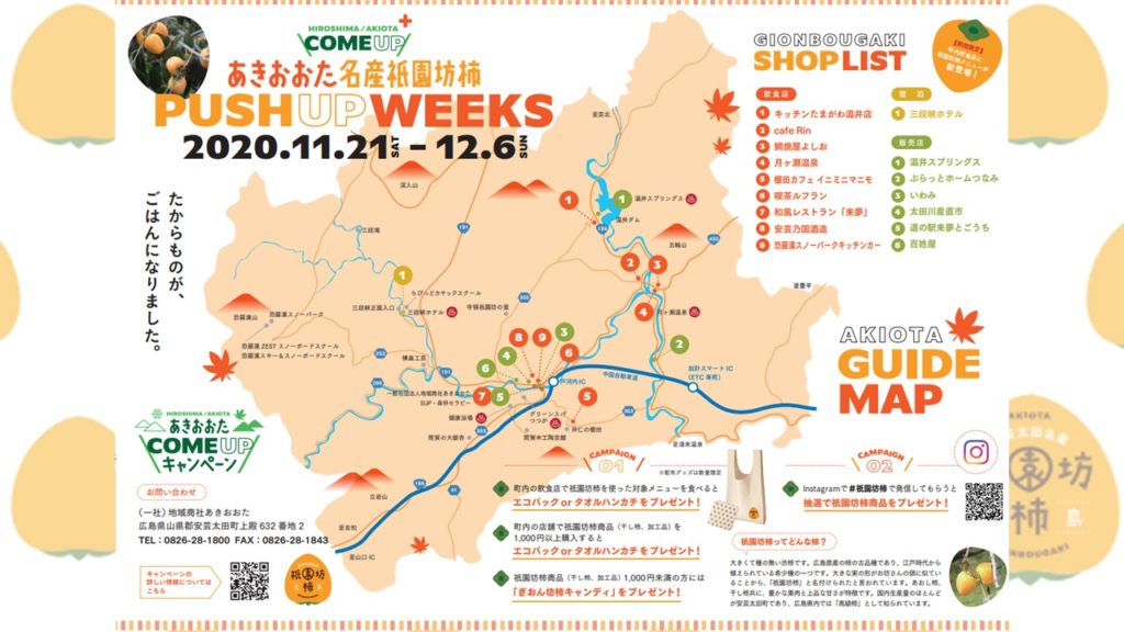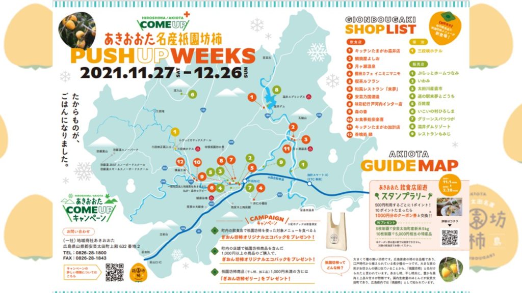 12月3日(土)~12月25日(日)間で「あきおおた名産祇園坊柿PUSH UP WEEKS」を開催します。