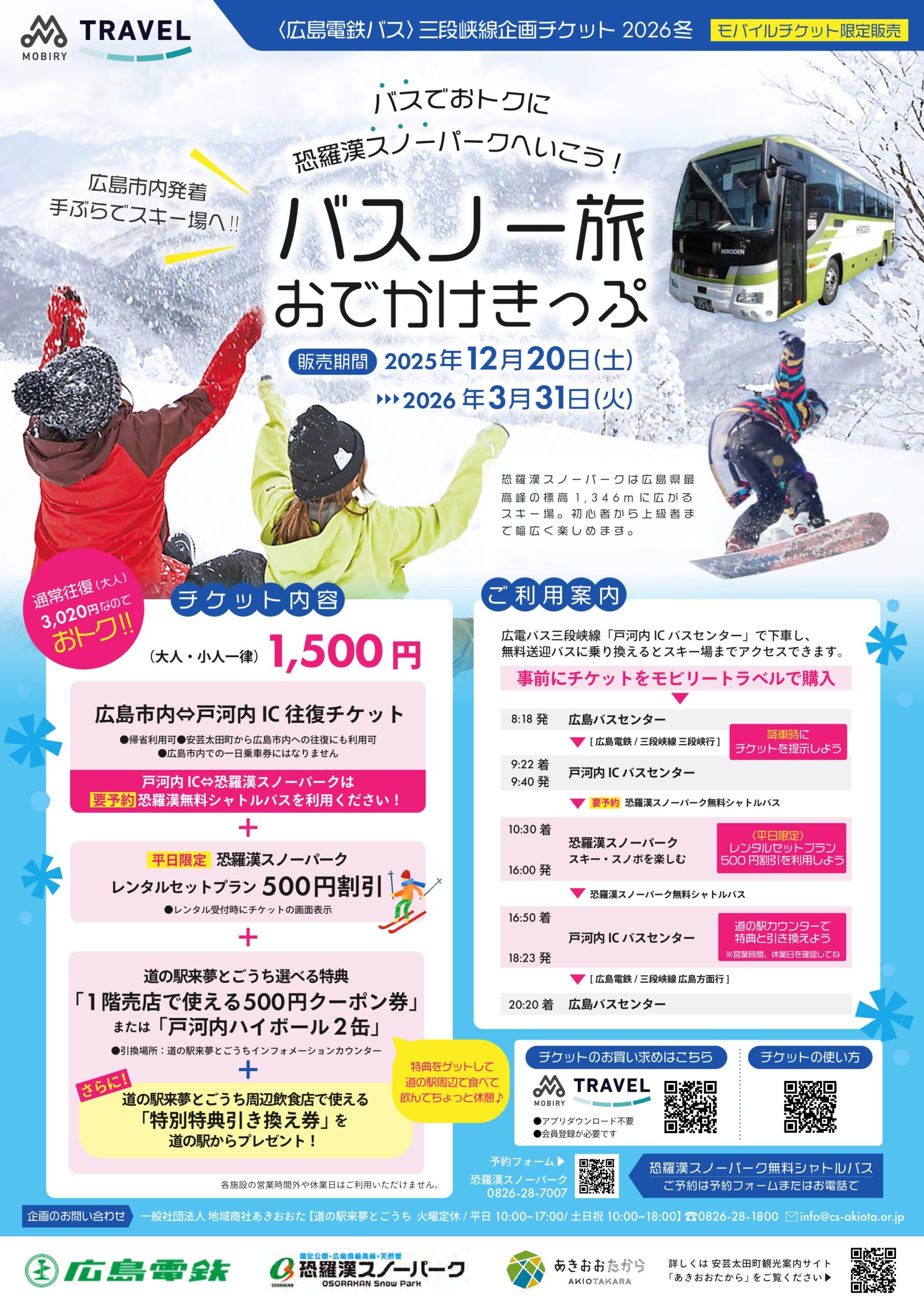 ホームお知らせお知らせ〈広電バス〉三段峡線企画チケット2026冬【バスノー旅おでかけきっぷ】モバイルチケット販売のお知らせ