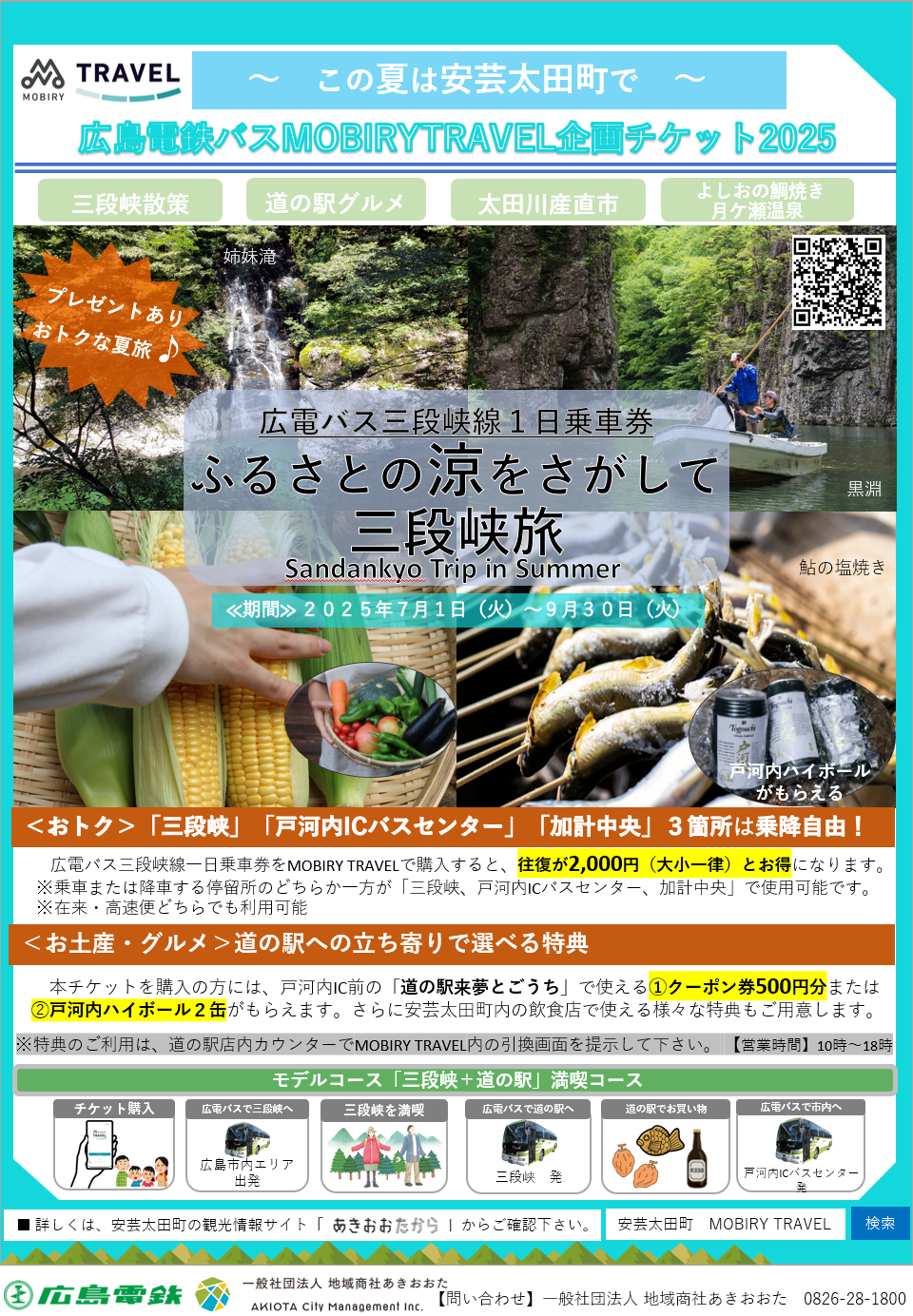 ホームお知らせイベント広電バスMOBIRY TRAVEL 安芸太田道の駅バスセット券「夏の三段峡旅」企画スタートのお知らせ