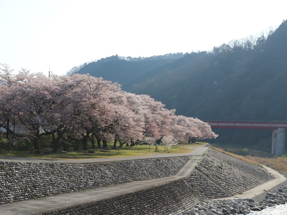 ・川の音を聞きながら花見ができます。シートを持って行くと長く楽しめます。