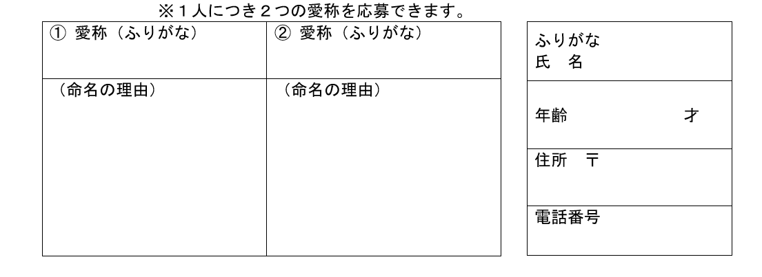 ・愛称採用者は、住所(市町村名まで)、氏名を公表させていただく場合があります。