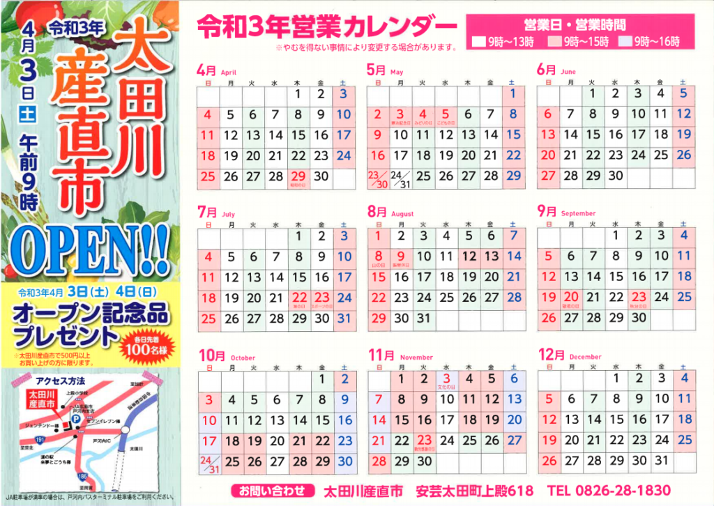| 定休日 | 後日掲載予定の営業カレンダーでご確認下さい。なお、1月および2月は休業です。 |